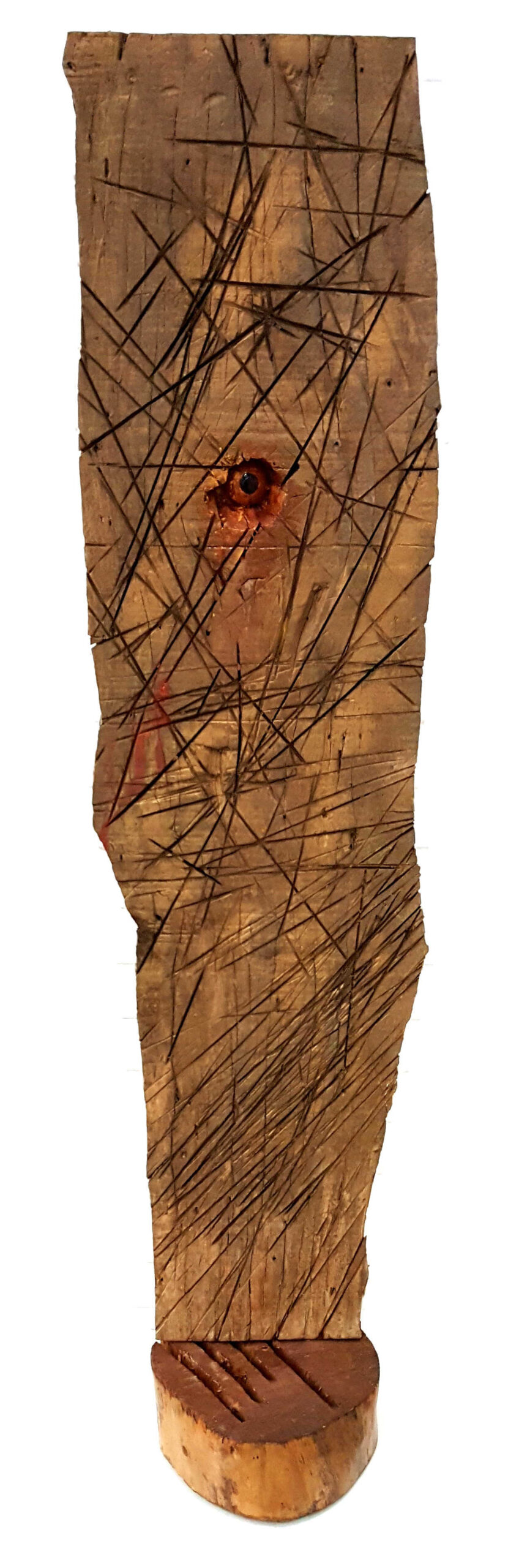 Uma madeira machucada olha com fúria o Homem. Ficou exposto no Centro Cultural do Tribunal Regional do Trabalho, nos Museus da Justiça do Rio de Janeiro e Niterói e no Centro Cultural Light.